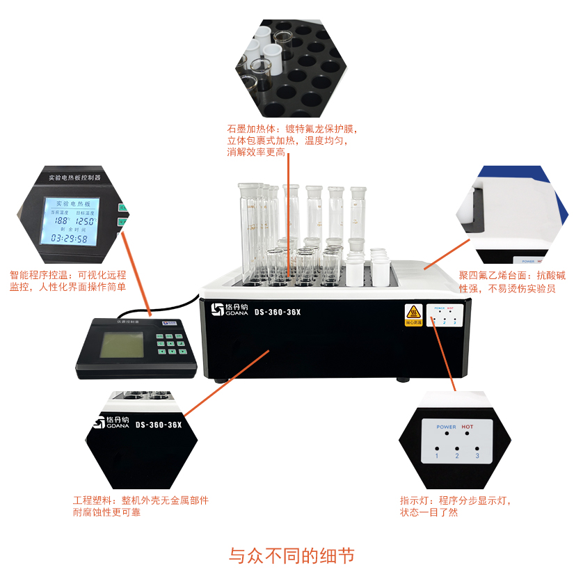 DS-360-36X線控石墨消解儀(36位)主要用于實(shí)驗(yàn)室樣品前處理中進(jìn)行加熱、趕酸、消解的設(shè)備,比實(shí)驗(yàn)電熱板效率高、成本消耗低,石墨消解儀采用高純石墨作為加熱體,包裹式加熱,溫度均勻充分消解樣品。多孔的設(shè)計,輕松實(shí)現(xiàn)了批量的處理樣品,拋棄傳統(tǒng)單一的消解模式,是您樣品消解的必備實(shí)驗(yàn)室裝備之一。