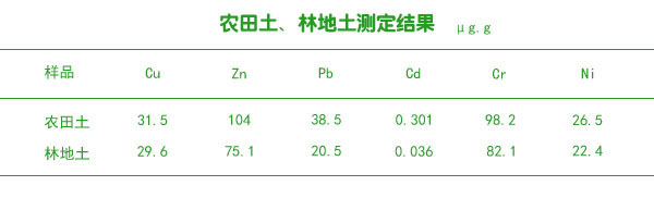 實(shí)際樣品農(nóng)田土、林地土測定結(jié)果