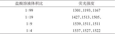 Tab. 3   Fluorescence intensity of different volume ratios of hydrochloric acid solution (n=3)